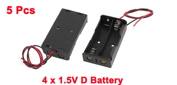 5 Pcs Black 4 x 1.5V D Battery Batteries Holder Case w Wire Leads
