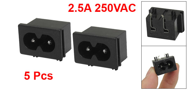 5 Pcs Black Male Plug IEC320 C8 AC Power Socket Connector 2.5A 250VAC