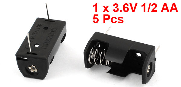5 Pcs Black Plastic 1 x 3.6V 1/2 AA Battery Holder Case w Pins