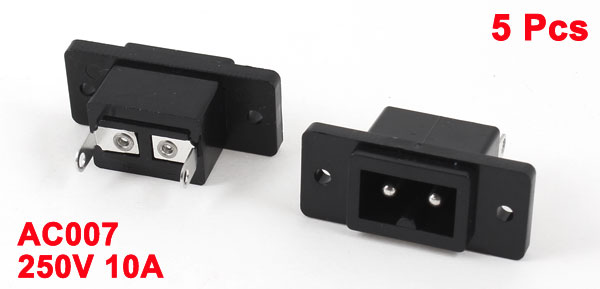 5 Pcs Black Plastic 2 Pins AC007 Inlet C8 Plug Power Adapter 250V 10A