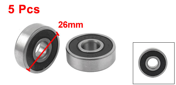 5 Pcs Black Rubber Shielded Deep Groove Ball Bearing 629-2RS 26mm x 9mm x 8mm