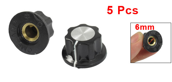 5 Pcs Black Silver Tone 16mm Top Rotary Knobs for 6mm Dia. Shaft Potentiometer