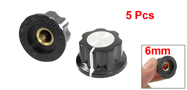 5 Pcs Black Silver Tone 19mm Top Rotary Knobs for 6mm Dia. Shaft Potentiometer