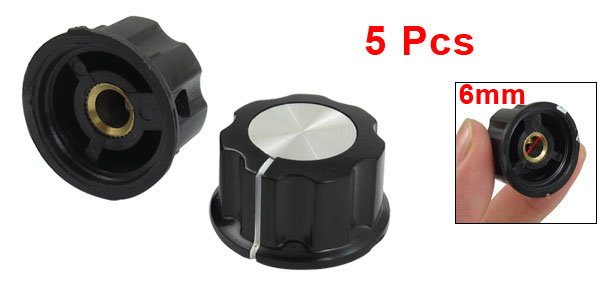 5 Pcs Black Silver Tone 24mm Top Rotary Knobs for 6mm Dia. Shaft Potentiometer