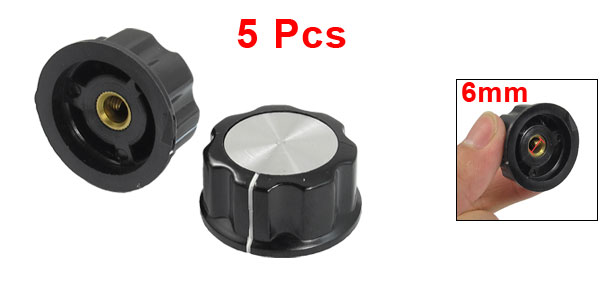 Product Name Rotary Knob Material Plastic, Metal Color Black, Silver Tone Fit for Shaft Hole Dia. 6mm/ 15/64" Knob Inner Dia 26mm/ 1.4" Knob Top Diameter 30mm/1.2" Overall Size 33 x 16mm/ 1.3" x 0.6"(D*H) Weight 62g Package Included 5 x Potentiometer Rotary Knobs - Reviews