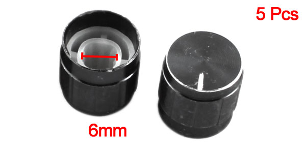 Product Name Potentiometer Knob Material Plastic, Aluminum Fit for Knurled Shaft Color Black Total Size 14 x 15mm / 0.55" x 0.59" (D*H) Inner Hole Diameter(Fit Shaft Dia) 6mm / 0.24" Net Weight 12g Package Content 5 x Potentiometer Knobs - Reviews