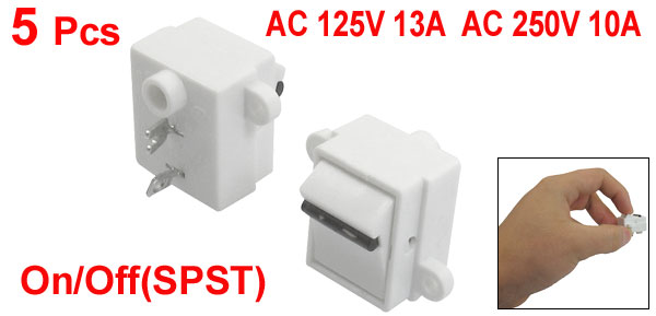 Total Size(Each) 21 x 27 x 21mm/ 0.83" x 1.06" x 0.83"(L*W*H) Mounted Size 20 x 17mm/ 0.79" x 0.67"(L*W) Hole Dia. 2.5mm/ 0.1" Color White, Black Material Plastic, Metal Weight 22g Package Content 5 x Rocker Switches - Reviews
