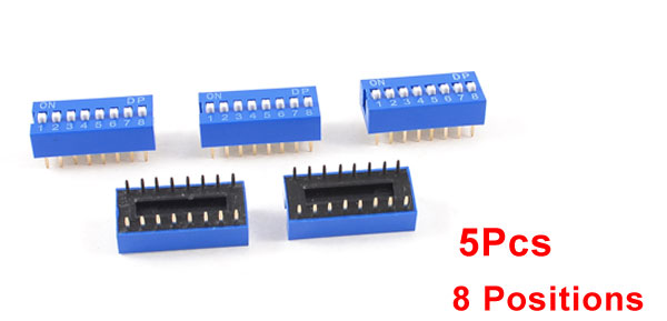 5 Pcs Blue Double Row 16 Pin 8 Positions 2.54mm Pitch DIP Switches