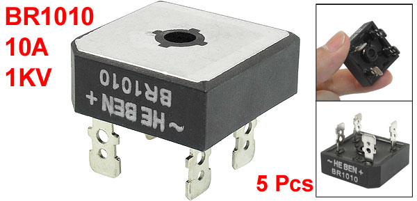 5 Pcs BR1010 1KV 10Amp Single Phase Bridge Rectifier Half-Wave Silver Tone Black