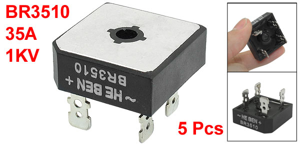 5 Pcs BR3510 1KV 35Amp Single Phase Bridge Rectifier Half-Wave Silver Tone Black