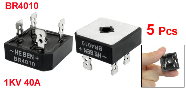 5 Pcs BR4010 1KV 40A Single Phase Bridge Rectifier Half-Wave Silver Tone Black