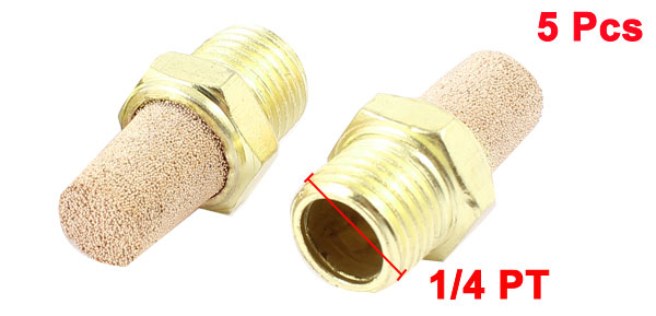 5 Pcs Brass 1/4PT Male Thread Noise Reducing Pneumatic Muffler Silencer Filter
