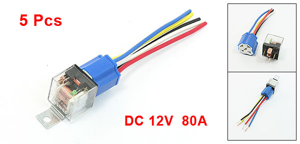 5 Pcs Car Alarm SPDT Green Indicator Car Relay 5P Ceramic Socket 80A 12V DC