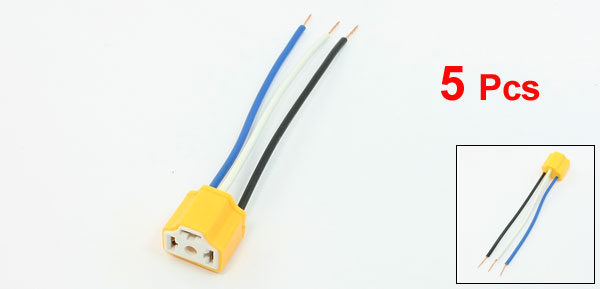 5 Pcs Car Vehicle Auto Light Lamp Flat 3 Pin H4 Ceramic Socket Yellow