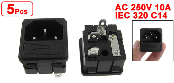 Product Name Power Inlet Socket Power Supply AC 250V 10A Plug Type IEC 320 C14 Pins Number 3 Mounting Type Clamp Type Mounting Size 3.05 x 2.7 x 2.7cm / 1.2" x 1.06" x 1.06" (L*W*T) Overall Size 3.25 x 3 x 3.2cm / 1.3" x 1.2" x 1.3" (L*W*T) Fit Fuse Size 5 x 23mm / 0.2" x 0.9" (D*L) Material Plastic, Metal Color Black, Silver Tone Net Weight 79g Package Content 5 x Power Inlet Sockets - Reviews