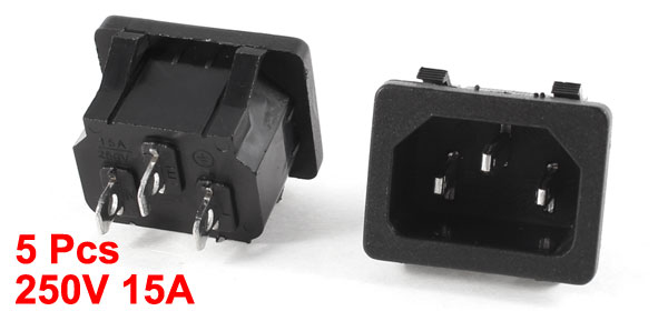 Product Name Power Inlet Socket Power Supply AC 250V 15A Plug Type IEC 320 C14 Pins Number 3 Mounting Type Clamp Type Overall Size 3.2 x 2.3 x 2.8cm / 1.3" x 0.9" x 1.1" (L*W*H) Material Plastic, Metal Color Black, Silver Tone Net Weight 40g Package Content 5 x Power Inlet Sockets - Reviews