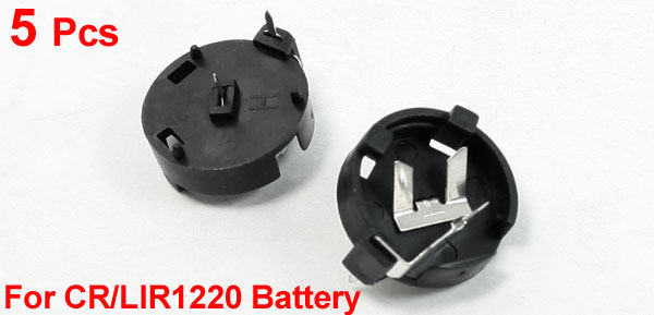 Product Name Button Battery Holder Fit Battery Model CR/LIR1220 (Not Included Here) Material Plastic, Metal Available Battery Quantity 1 Body Size 15 x 5mm / 0.6" x 0.2"(Max D*H) Inner Diameter 12mm / 0.79" Pin Quantity 2(1 for "-", 1 for "+") Distance Between Pins 8mm / 0.31" Color Black Net Weight 4g Package Content 5 Pcs x Button Battery Holder - Reviews