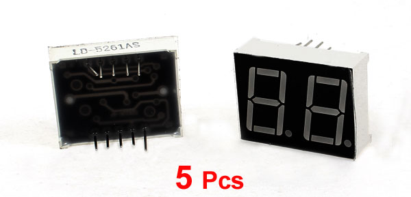 Product Name LED Digital Tube Model LD-5261AS Type Common Cathode Emitted Color Red Pin Number 10 Pin Pitch 2mm/0.08" Size(No INclude Pin) 25 x 19 x 7mm/1" x 0.7" x 0.3" (L*W*H) Digital Tube Height 14.2mm/0.56" Material Plastic, Metal Color Black, White Net Weight 20g Package Content 5 x LED Digital Tube - Reviews