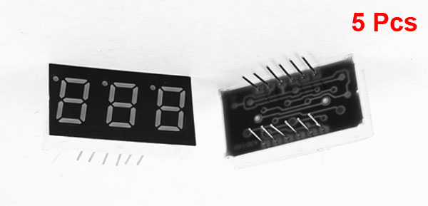 5 Pcs Common Cathode 12 Pin 3 Bit 7 Segment 0.4" Red LED Display Digital Tube