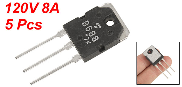 Collector Emitter/ Base Voltage 120V Collector Current 8A Collector Dissipation 80W Mounting Hole Diameter 3mm/ 0.12" Pin Size 21 x 5.04mm/ 0.83" x 0.2" ( L* Pitch) Body Dimension 41 x 15 x 5mm/ 1.6" x 0.6" x 0.3" (L*W*T) Weight 24g Package Content 5 x PNP Silicon Power Transistor - Reviews