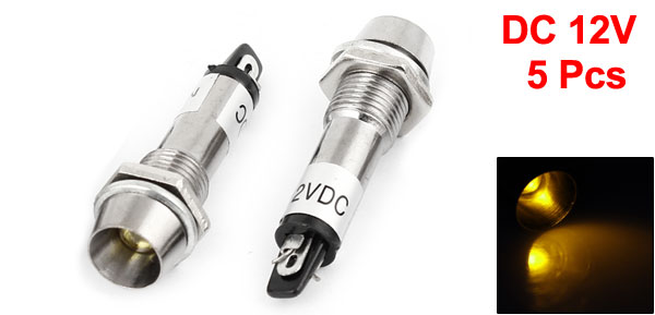 5 Pcs DC 12V 8mm Thread Yellow Bulb Power Signal Indicator Pilot Light Lamp