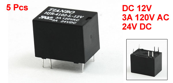 5 Pcs DC 12V Coil 6 Pins SPDT HJR-4102-L PCB Power Relay 3A 120VAC 24VDC