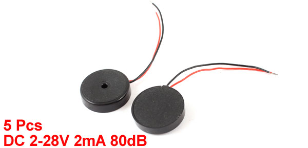 Product Name Electronic Buzzer Sound-making Type Continuous Sound Working Voltage DC 2-28V Rated Current 2mA Frequency 4000±500Hz Sound 80dB Body Diameter 14mm / 0.67" Overall Size 14 x 4mm / 0.55" x 0.16"(D*T) Wire Length 3cm / 1.2" External Material ABS Color Black Weight 5g Package Content 5 x Electronic Buzzer
