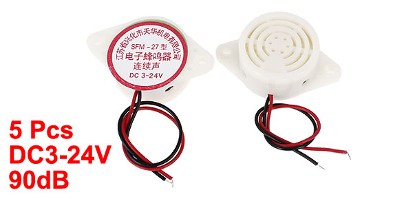 5 Pcs DC 3-24V 2 Wire Industrial Continuous Sound Electronic Buzzer 90dB