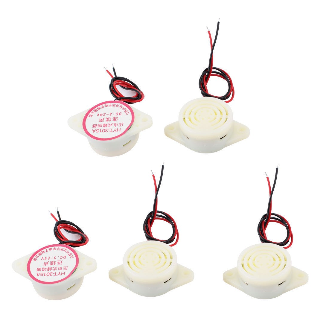 Product Name Electronic Buzzer Sound-making Type Continuous Sound Working Voltage DC 3-24V Overall Size 48 x 30 x 15mm / 1.9" x 1.2" x 0.6"(L*W*T) Wire Length 19cm / 7.5" Mounting Hole Diameter 3mm/ 0.1" Mounting Hole Distance 40mm/ 1.6" External Material Plastic Color Beige Weight 42g Package Content 5 x Electronic Buzzer