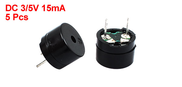 5 Pcs DC 3/5V 15mA 2 Pins Cylinder Electronic Continuous Sound Buzzer 12x8.5mm