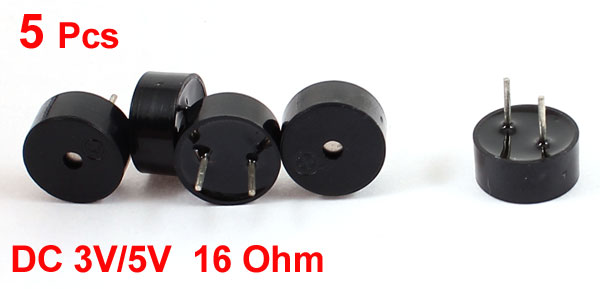 Product Name Electromagnetic Buzzer Sound-making Type Continuous Sound Rated Voltage DC 3V/5V Resistance 16 Ohm Body Size 9 x 4.2mm / 0.35" x 0.17" (D*T) Pin Pitch 4mm External Material Plastic Color Black Weight 4g Package Content 5 x Electromagnetic Buzzer