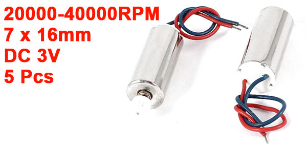 Product Name DC Coreless Motor Rated Voltage DC 3V Current 60-70mA Speed 20000-40000RPM Geared Shaft Dia 4mm/ 0.16" Body Size 7 x 16mm/ 0.3" x 0.6" (D*H) Wire Length 9cm/3.5" Main Color Silver Tone Material Metal Net Weight 15g Package 5 x DC Coreless Motor  - Reviews