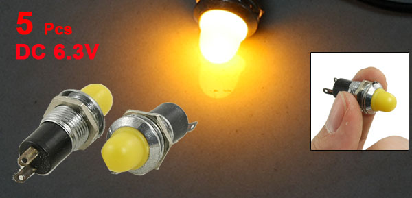 5 Pcs DC 6.3V 3/8" Threaded Yellow Signal Indicator Pilot Light Lamp