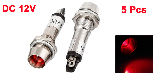 5 Pcs DC12V 8mm Thread Red Bulb Power Signal Indicator Pilot Light Lamp