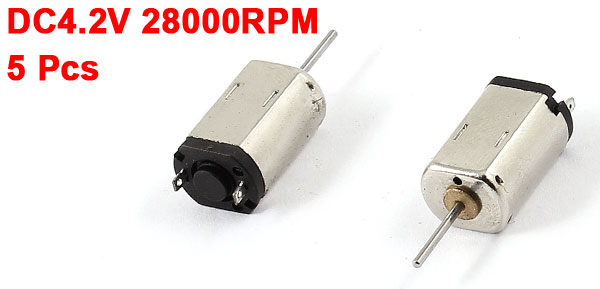 Product Name DC Motor Rated Voltage DC4.2V Speed 28000RPM Rated Current 0.18A Output Shaft Diameter 1mm/0.039" Output Shaft Length 10mm/0.39" Motor Height 15mm/ 0.59" Motor Thickness 8mm/0.31" Motor Width 15.5mm/0.61" Main Color Gray Material Metal Weight 30g Package 5 x DC Motors - Reviews
