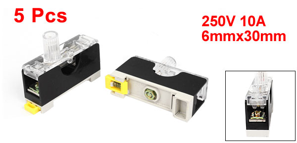 5 Pcs DIN Rail Plastic Fuse Holder Base FS-10 w Fuses 250V 10A 6x30mm