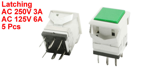5 Pcs DPDT 6-Pin Self-Locking Control Green Cap Push Button Switch