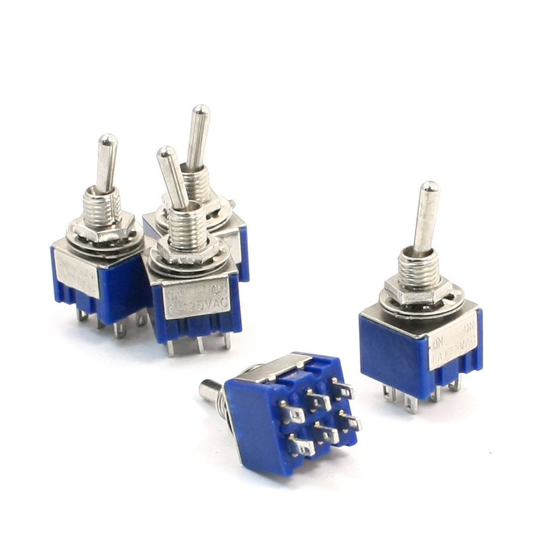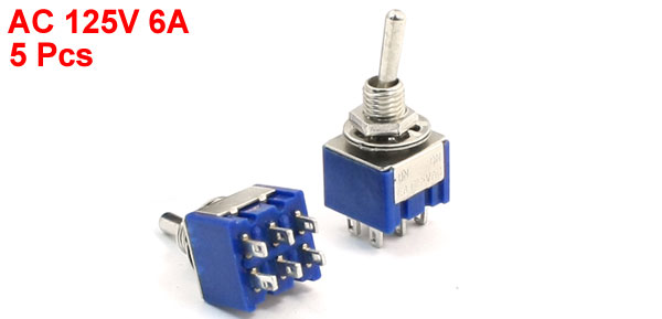 Product Name Toggle Switch Type DPDT Latching ON-ON Position 2 Voltage & Current 6A 125VAC Total Size 1.2 x 1.1 x 3.2cm/0.47" x 0.43" x 1.2"(L*W*H) Mounting Thread 6mm/0.24" Material Metal, Plastic Main Color Blue, Silver Tone Weight 27g Package Content 5 Pcs x Toggle Switch - Reviews
