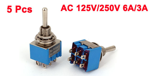Main Color Blue, Silver Tone Brand DMiotech Country of Manufacture CHINA Terminals 6 Type DPDT (Momentary) Material Metal, Plastic Overall Height 34mm/1.3" Voltage, Current AC 125V/250V 6A/3A Product Name Toggle Switch Net Weight 30g Package Content 5 x Toggle Switch Main Body Size 13 x 13 x 10mm/0.5" x 0.5" x 0.4"(L*W*H) Position 3 Positions (ON/OFF/ON) Mounting Thread Diameter 6mm/0.24" - Reviews