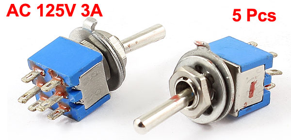 5 Pcs DPDT On/Off/On 3 Position 6 Terminals Toggle Switch AC 125V 3A