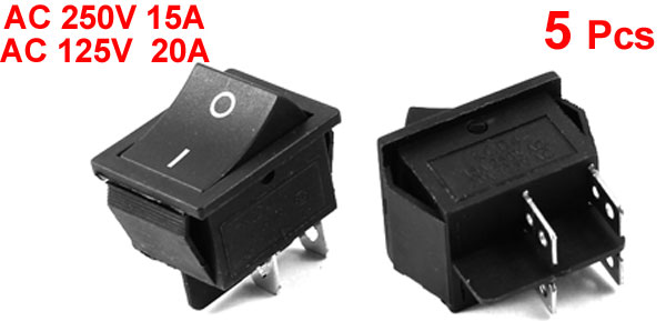 Product Name Rocket Switch Color Black Type KCD4 (DPST) Power 15A/250V 20A/125V AC Total Size 33 x 25 x 36mm/ 1.3" x 1" x 1.4" (L*W*H) Mounting Size 31 x 21mm / 1.18" x 0.83"(L*W) Net Weight 51g Package Content 5 x Rocker Switch - Reviews