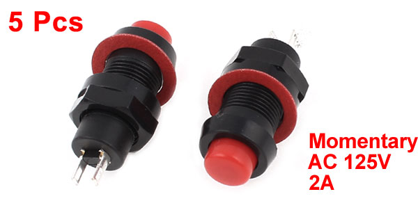 Item Name Push Button Switch Model DS-211 Contact Type NO, SPST Action Type Momentary Working Voltage AC 125V Working Current 2A Mounting Thread Diameter 10mm / 0.4" Button Cap Diameter 8mm / 0.3" Terminals 2 Overall Size 15 x 30mm / 0.6" x 1.2" (Dia.*H) Material Plastic, Electronic Parts Color Red, Black Weight 13g Package Content 5 x Push Button Switch - Reviews