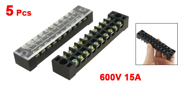 5 Pcs Dual Row 10 Position Screw Terminal Block Connector 600V 15A