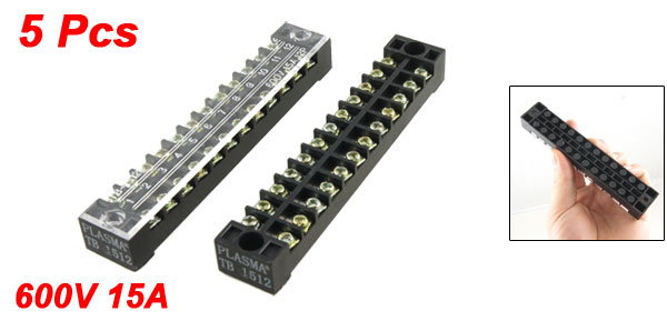 5 Pcs Dual Row 12 Position Barrier Screw Terminal Strip 600V 15A