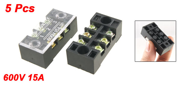 5 Pcs Dual Row 3 Position Screw Terminal Strip 600V 15A