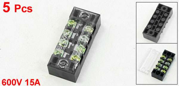 5 Pcs Dual Row 4 Positions Screw Terminal Barrier Block 600V 15A