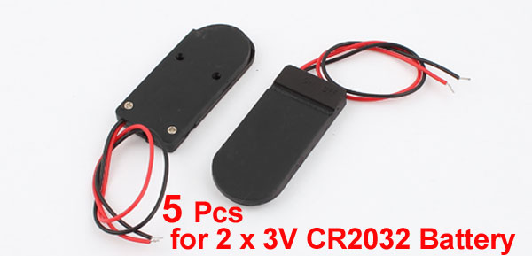 5 Pcs Dual Wire Leads Plastic Shell 3V 2032 Cell Button Battery Holder Cases