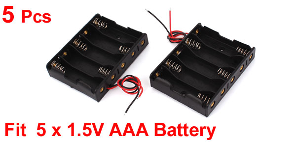5 Pcs Dual Wired Spring Clip 5 x 1.5V AAA Battery Case Container Box Holder