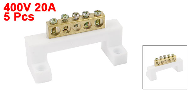 5 Pcs Electric Cable Connector 5 Positions Screw Barrier Terminal Block 400V 20A