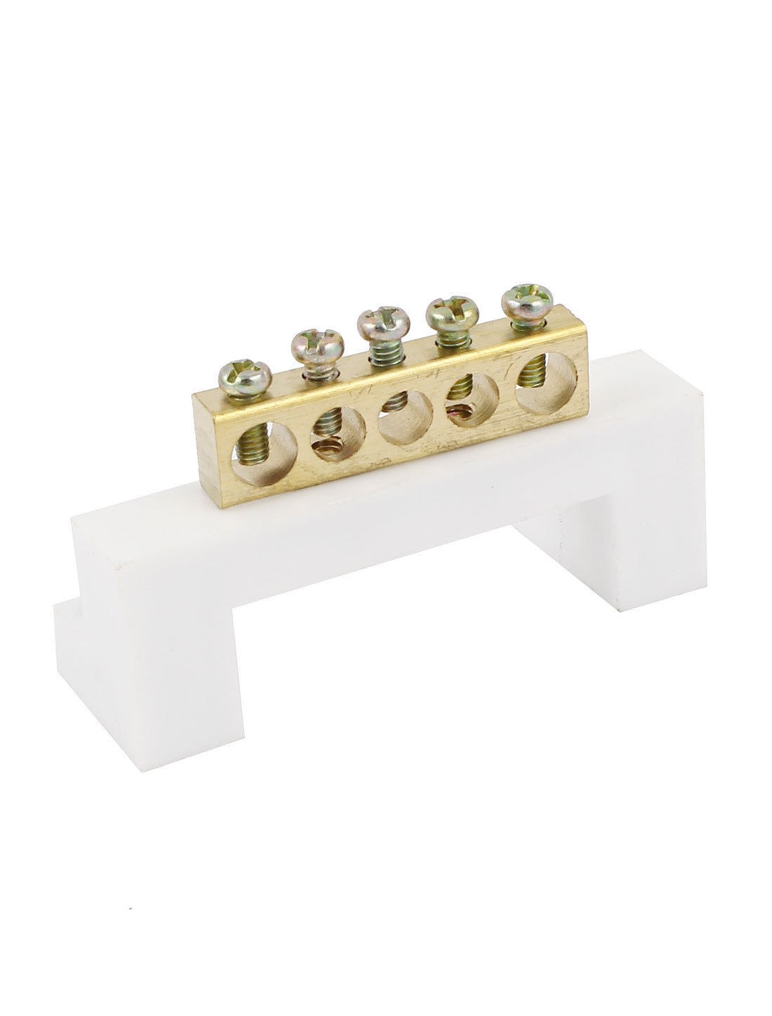 Product Name Barrier Terminal Block Power 400V 20A Material Metal,Plastic Color Bronze Tone,White Type 5 Positions Install Hole Diameter 6mm/ 0.24" Size 73 x 40 x 26mm/ 2.9" x 1.6" x 1" (L*W*H) Weight 174g Package Content 5 x Barrier Terminal Block - Reviews